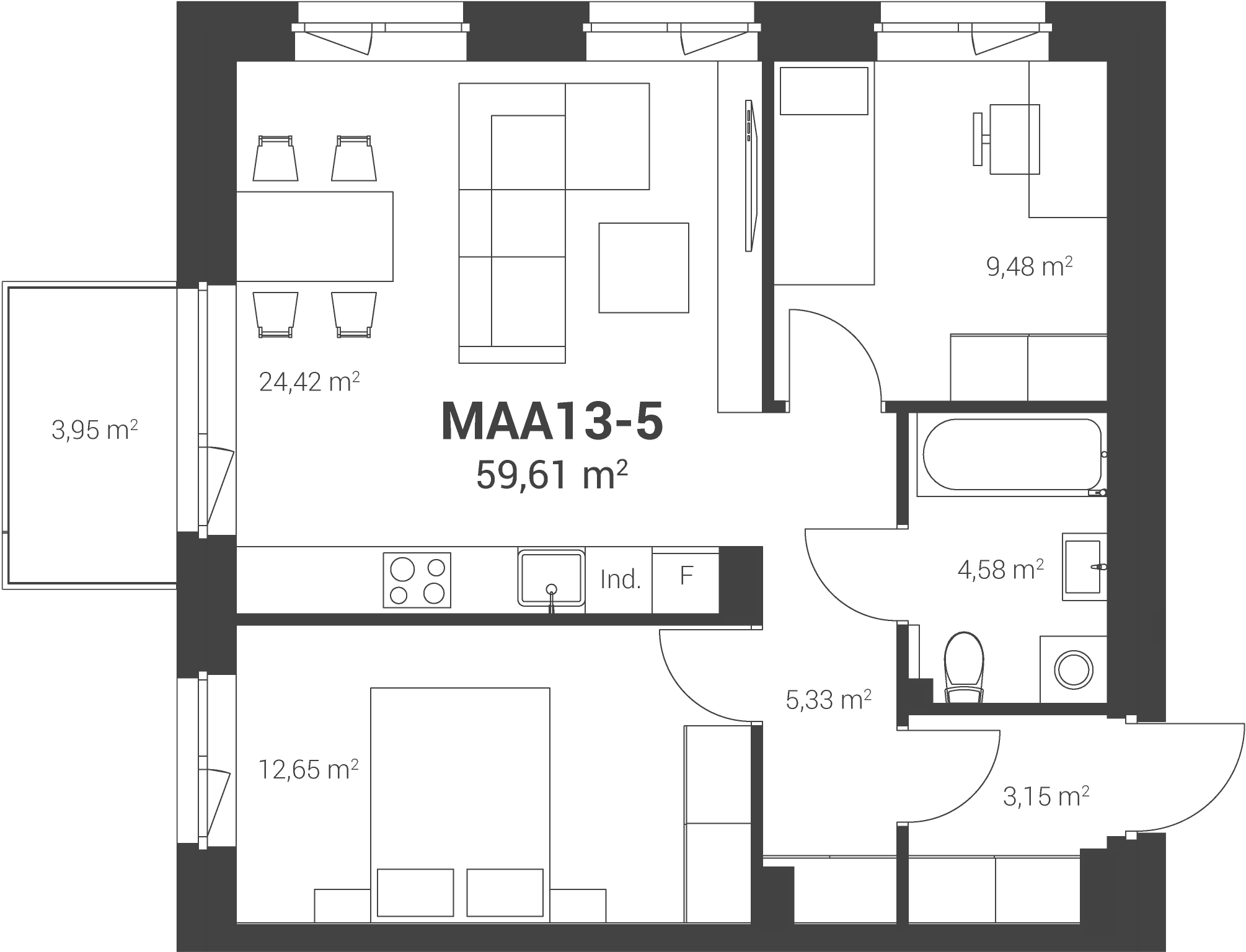 59,61 m2