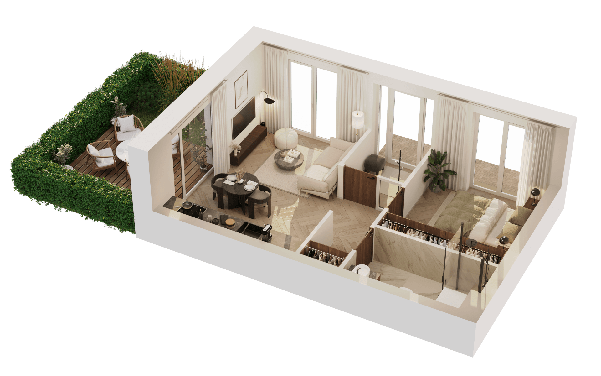 • Individualios medinės terasos