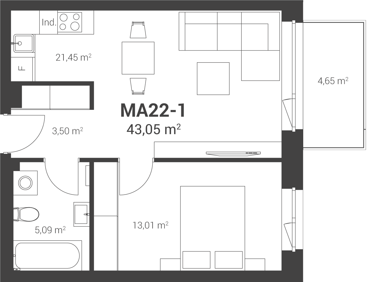 43,05 m2